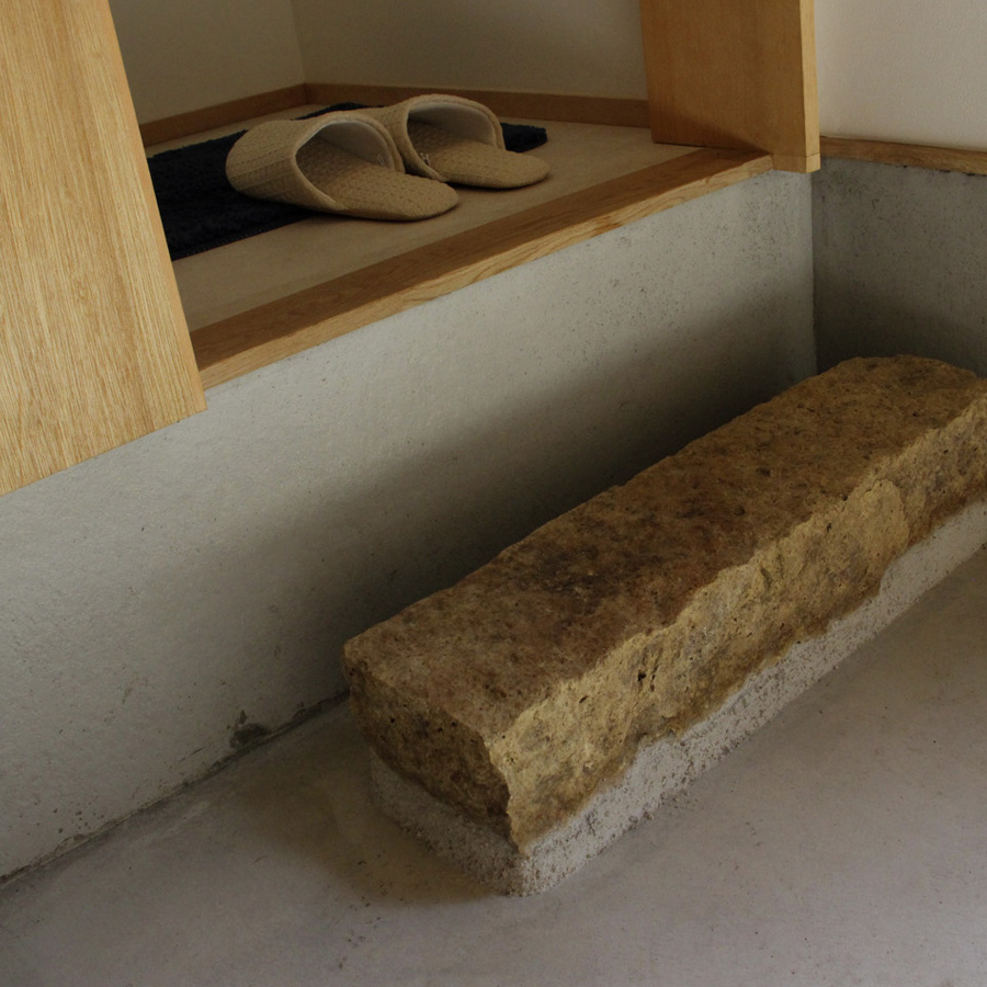 The first floor of the inn is the living room. In order to make the most of this small property, it only has a dirt-floored entrance and a Japanese-style room. The furniture and appliances have also been kept to a minimum, creating a minimalist design.